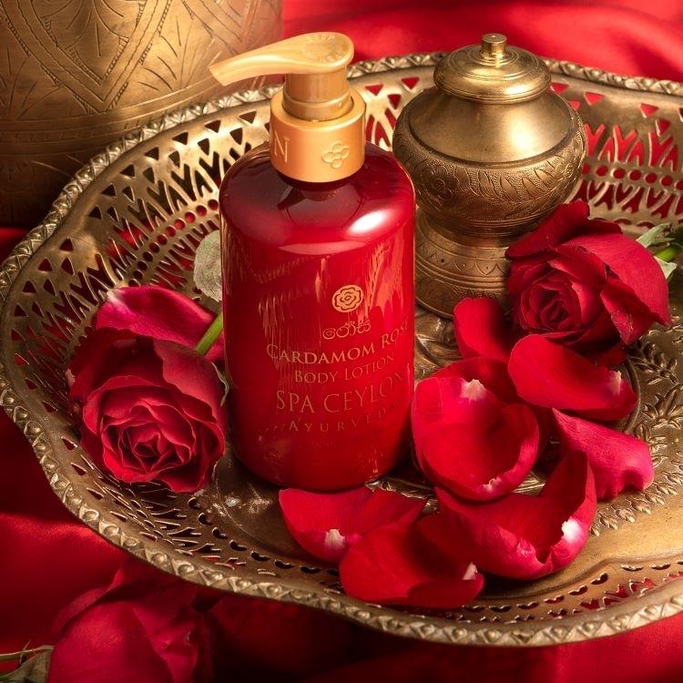 塗抹在雙手和身體上。按摩並停留在上面。為了達到更好的效果,還可以使用小豆蔻玫瑰沐浴露和小豆蔻玫瑰護手霜。